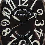 Discover the epitome of elegance with the 2005 Franck Muller Casablanca, model 5850CASA. This masterpiece is a testament to the artistry and innovation that Franck Muller is renowned for. With its 34mm case, this timepiece is the perfect blend of sophistication and versatility, designed to elevate your style in any setting. The Casablanca series is celebrated for its timeless allure, and this model captivates with its clean lines and classic charm. The distinctive curved case is a signature Franck Muller design, ensuring not just a statement of luxury but also a comfortable fit that caresses your wrist. Powered by precision Swiss movement, this watch is a beacon of reliability and craftsmanship. Embrace the Franck Muller Casablanca 5850CASA as more than just a timepiece; let it be a symbol of your refined taste and a cherished jewel in your collection.