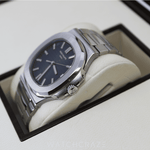 The Nautilus signature octogonal stainless steel case is 40mm. Its polished and satin-brushed finishes contrast, adding elegance. The integrated stainless steel bracelet fits comfortably and stylishly.