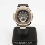 The Nautilus 5980/R's self-winding Patek Philippe Calibre CH 28-520 C movement ensures precision and reliability. Flyback chronograph allows one-press stopwatch reset and restart. The sapphire case back displays the beautifully finished movement.