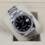 This Rolex Datejust with Diamond Markers 34mm 115234 is water-resistant up to 100 metres, making it a stylish everyday watch.