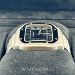 The 2021 Cartier Santos de Cartier Blue Dial 40mm WSSA0030 combines classic design with modern functionality. The watch's 40mm stainless steel case, blue dial, and luminous sword-shaped hands enhance its elegance.