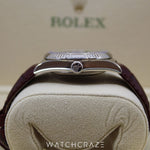 The 2021 Rolex Day-Date 36mm 118139 oozes sophistication and elegance when worn with a matching cherry red alligator leather strap. The watch makes a big statement while simultaneously keeping time, displaying the wearer's self-assurance and sense in fashion. This Rolex Day-Date model is a sought-after option for watch aficionados and collectors looking for a distinctive and opulent wristwatch thanks to its distinctive cherry red dial and timeless design.