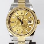 The majesty and precision of the 2022 Rolex Sky-Dweller Two-Tone 42mm 326933 are uncompromising in its craftsmanship. This remarkable wristwatch seamlessly blends form and function, evoking Rolex's famed watchmaking legacy.